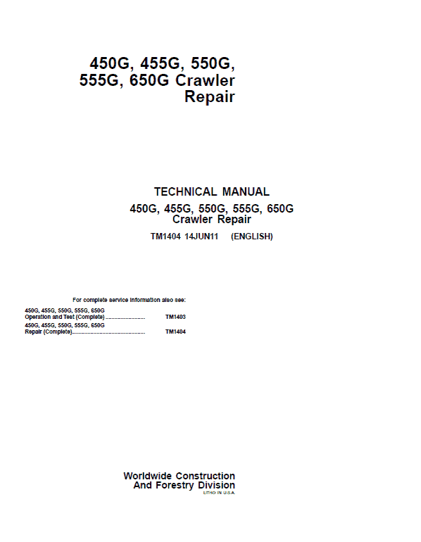John Deere 450G, 455G, 550G, 555G, 650G Crawler Operation and Test Technical Manual (TM1403), formatted as requested.